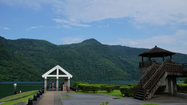 鯉魚潭以環湖的自行車觀光最為盛行,但我們從花蓮市騎機車到這,還須保留體力給回程,選擇慢慢走欣賞湖水。